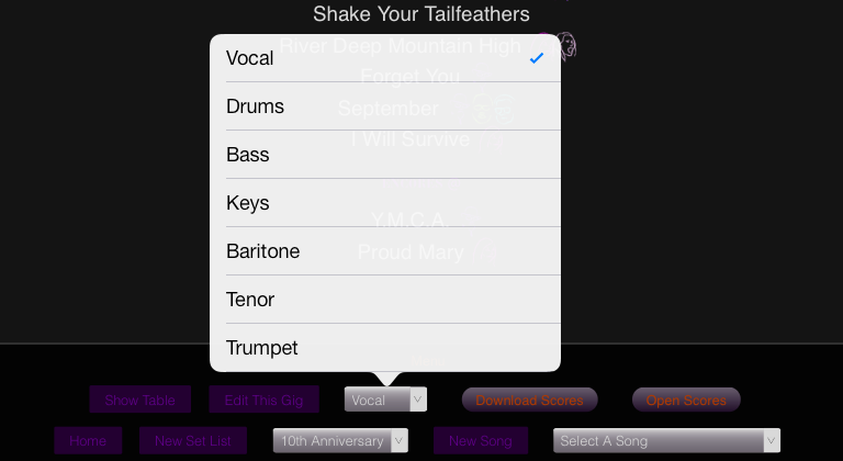 4. Select your instrument from the drop-down list (defaults to vocal)